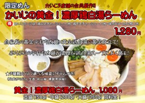かいじ3店舗 黄金!濃厚鶏白湯らーめん