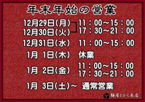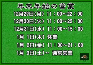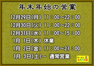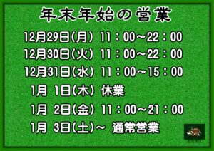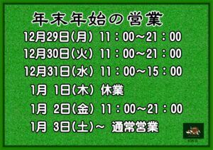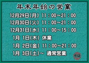 年末年始の営業スケジュールは、下記の通りとさせていただきます。