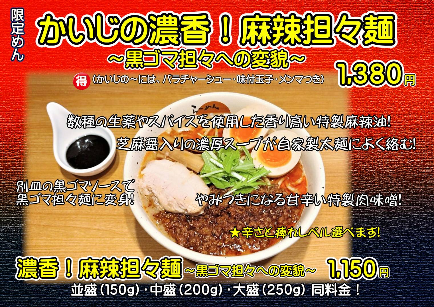 らーめんかいじ泉店 10月の限定めん詳細です! 商品名 「濃厚和歌山らーめん」 価格 ¥1,000- その他「味玉濃厚和歌山らーめん」 ¥1,150- 「濃厚和歌山チャーシューめん」 ¥1,…