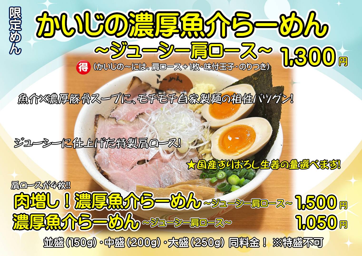 かいじ利府店 濃厚魚介らーめん 〜ジューシー肩ロース〜