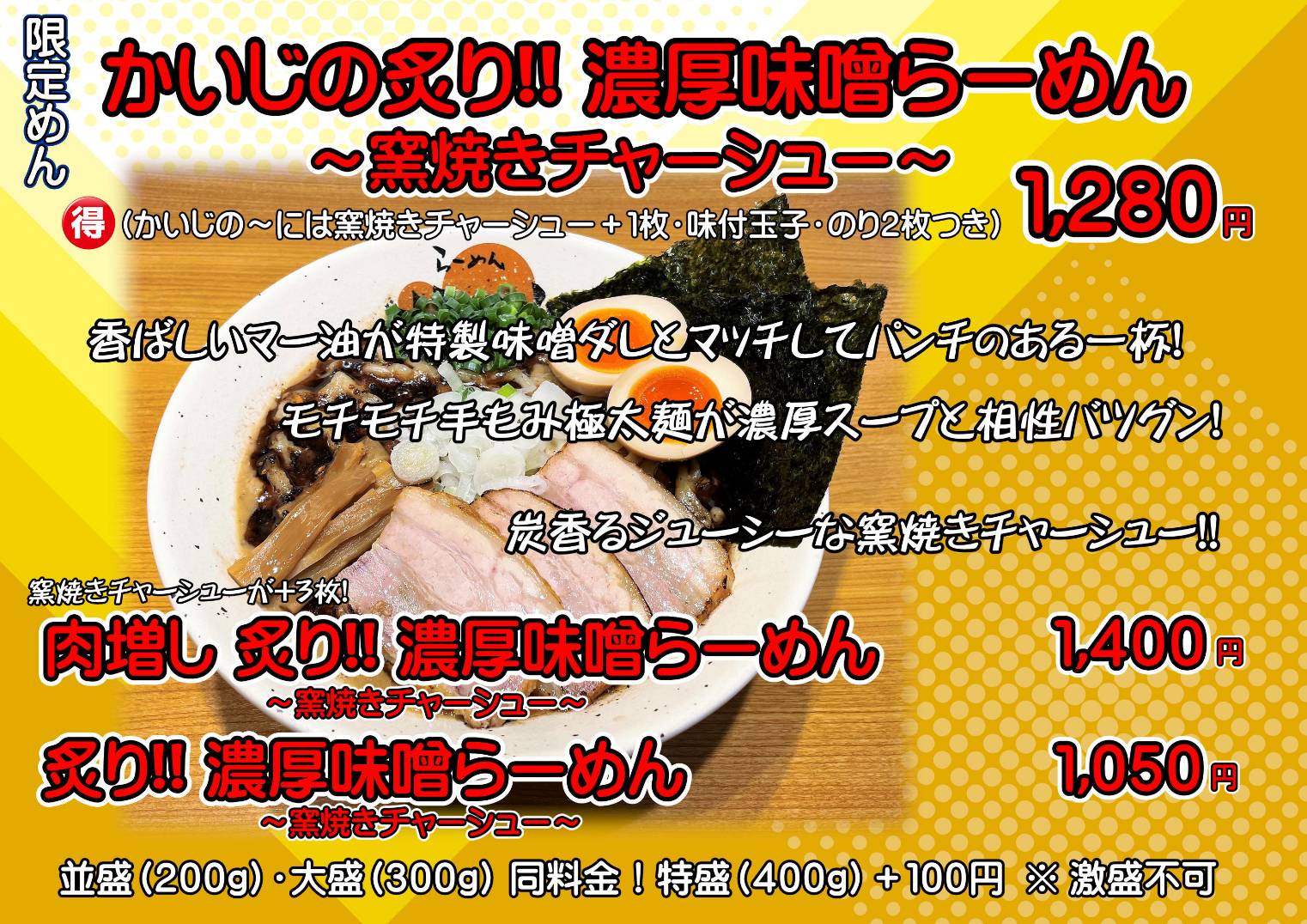 続きを読むかいじ泉店 炙り!!濃厚味噌らーめん~窯焼きチャーシュー~