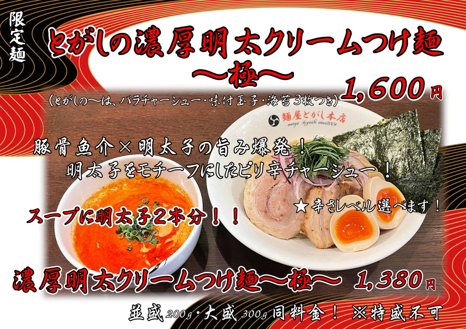 こんにちは! 本店 野坂です! 限定麺を販売します! 野坂=〇〇〇 8月は君に決めた!!! では、詳細に入ります。 ◯商品名 とがしの濃厚明太クリームつけ麺〜極〜 濃厚明太クリームつけ麺〜極〜 ◯価格 とがしの〜¥160…