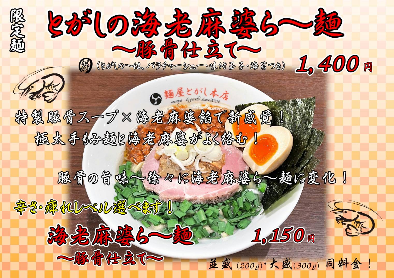 続きを読む麺屋とがし本店 海老麻婆ら〜麺 〜豚骨仕立て〜