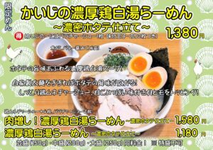 ⚫︎かいじの濃厚鶏白湯らーめん~濃密ホタテ仕立て~・1380円