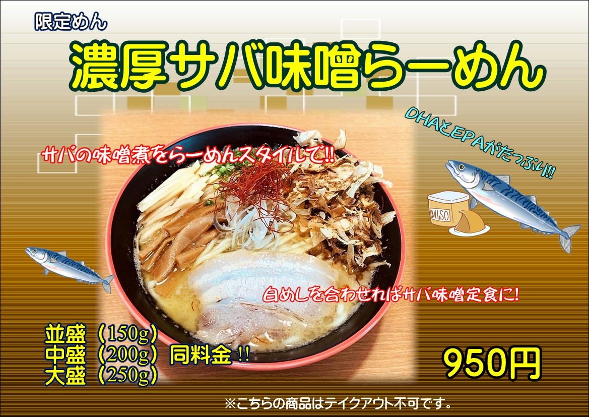 かいじ利府店では限定めん 【濃厚サバ味噌らーめん】 の販売がスタートしました! 夜の部限定で約3週間の販売予定です! (土日も17時から販売開始) コンセプトはサバの味噌煮。 サバをふんだんに使用しサバの味噌煮を忠実に再…